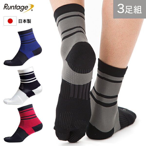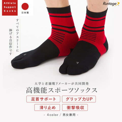 【3足セット】【日本製】アスリートサポート ソックス スポーツソックス 3足 アソート 足袋タイプ ミドル丈 メンズ/レディース 23-29cm ランニングソックス ランニング ジョギング マラソン テニス 登山 ゴルフ 靴下 (メール便不可)