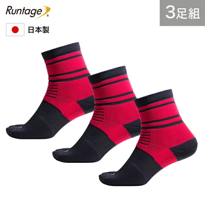 【3足セット】【日本製】アスリートサポート ソックス スポーツソックス 3足 ブラック×レッド 足袋タイプ ミドル丈 メンズ/レディース 23-29cm ランニングソックス ランニング ジョギング マラソン テニス 登山 ゴルフ 靴下 (メール便不可)