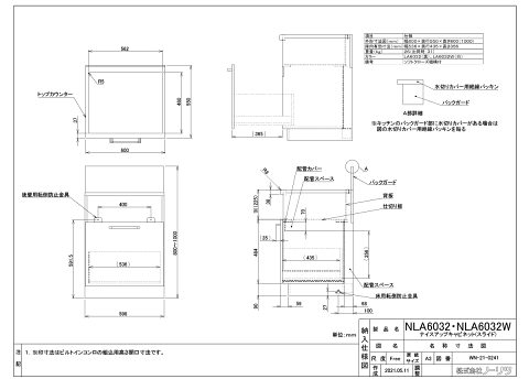 仕様 メーカーノーリツ 型番NLA6032W(ホワイト) 外形寸法W600×D550×H800〜1000mm(バックガード部0〜200含む)トッププレートまでの高さ800 この商品について《ご使用上の注意》※流し台キッチン対応「ナイスアップシリーズ」は、幅75ワイドタイプのコンロは選択できません。