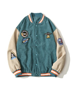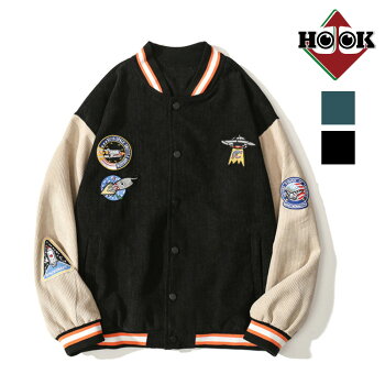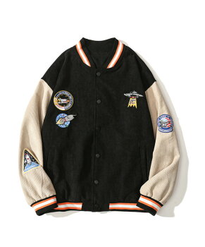【クーポンセール20%OFF】カップル ペアルック ブルゾン お揃い 服 冬 秋 アメカジ ビッグシルエット メンズ レディース オーバーサイズ ユニセックス 韓国ライク ドッキングブルゾン ワッペン 宇宙 コーデュロイ素材 ストリート【HOOK】