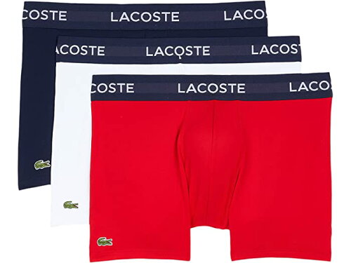 ■備考(取寄) ラコステ 3パック ソリッド ウィズ セミ ファンシー ベルト アンダーウェア トランクス Lacoste 3-Pack Solid with Semi Fancy Belt Underwear Trunks Navy Blue/White/Redメンズ ボクサーパンツ 下着 インナー ブランド 男性 大きいサイズ ビックサイズ zp-9585950