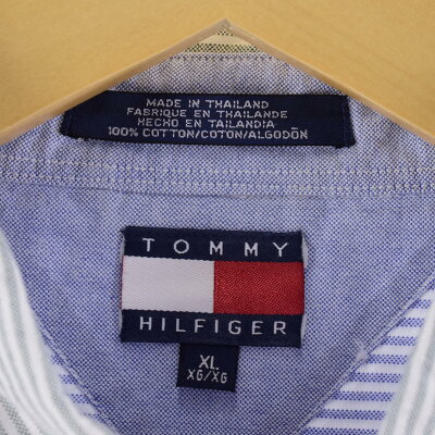 古着 90年代 トミーヒルフィガー TOMMY HILFIGER クレイジーパターン 長袖 ボタンダウンストライプシャツ メンズXL ヴィンテージ /eaa250301 【220502】