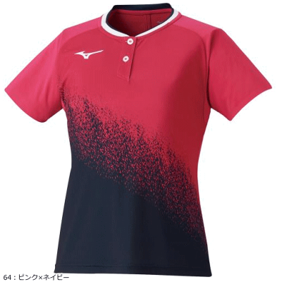MIZUNO ミズノ ソフトテニス ゲームシャツ レディース ヘンリーネック×ノイズスプラッシュグラフィック、爽やかな配色と衿のカラーリングがアクセント! ■サイズ S、M、L、XL ■カラー 54:オレンジ×ホワイト 64:ピンク×ネイビー 72:ホワイト×ディーバブルー ■素材 ポリエステル100% ■原産国 中国製 ■シルエット Standard Fit:最もスタンダードなシルエット ■ヘンリーネックスタイル ■スタンダードシルエットで安心の着用感。