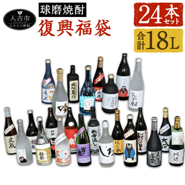 商品説明 名称 熊本人吉 球磨焼酎 復興福袋(24本/24蔵元) 産地 人吉球磨産 内容量 【鳥飼酒造】鳥飼(箱):720ml 【高田酒造場】あさぎりの花:720ml 【房の露】吟(箱):720ml 【繊月酒造】川辺:720ml 【深野酒造】よけまんくまモン(箱):720ml 【福田酒造場】山河くまモン:900ml 【宮元酒造場】人生百歳(銀):720ml 【恒松酒造本店】球磨拳:720ml 【松下醸造場】桜の里:900ml 【松の泉酒造】くまモンもっこす(箱):720ml 【白岳酒造研究所】白岳しろ:720ml 【高橋酒造】白岳くまモン:900ml 【宮原酒造場】宮の誉:720ml 【豊永酒造】華:720ml 【松本酒造場】緑松:720ml 【抜群酒造】熟香抜群:720ml 【堤酒造】黒麹時代 蔵八:720ml 【那須酒造場】球磨の泉 常圧:900ml 【木下醸造所】文蔵:720ml 【林酒造場】極楽(箱):720ml 【寿福酒造場】武者返し:720ml 【六調子酒造】心月(箱):720ml 【常楽酒造】水穂:720ml 【大石酒造場】大石:720ml すべてアルコール度数25度 合計24本(18L) 原材料名 米・米麹・水 賞味期限 別途ラベルに記載 保存方法 高温、多湿、直射日光を避け、涼しい場所に保管してください。
