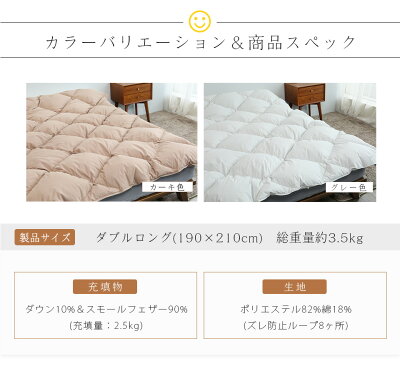 製造 日本企画・中国製 リニューアルについて こちらの商品は2021年08月18日に充填物が【シルバーダックフェザー90%&ダウン10%】に、充填量が2.3キロから2.5キロに変更しました。