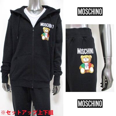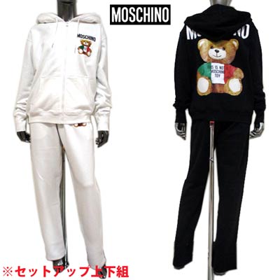 モスキーノ MOSCHINO レディース セットアップ上下組 トップス パンツ ロゴ 2color MOSCHINO BEAR転写ロゴプリント付きセットアップジャージ 白/黒 V1709+V0309 0527 1001/1555 (R166100) 121 2021年春夏新作【送料無料】 【smtb-TK】