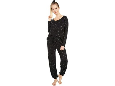 (取寄) プラッシュ レディース ウルトラ ソフト ハート ジャージ パジャマ + スクランチー セット Plush women Ultra Soft Heart Jersey Pajama + Scrunchie Set Black Multi