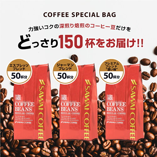 ・内容量 ●エスプレッソブレンド 500g ●ジャーマンブレンド 500g ●プレミアムブレンド”濃い味” 500g ・賞味期限 レギュラーコーヒーは焙煎日より一年間。