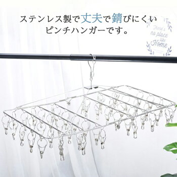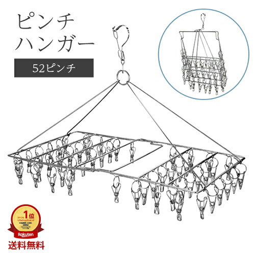 ピンチハンガー ハンガー 物干し 洗濯ばさみ付き ステンレス 折りたたみ 錆びにくい 絡まりにくい 丈夫 長持ち 52ピンチ 靴下 下着 洗濯物 送料無料